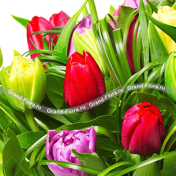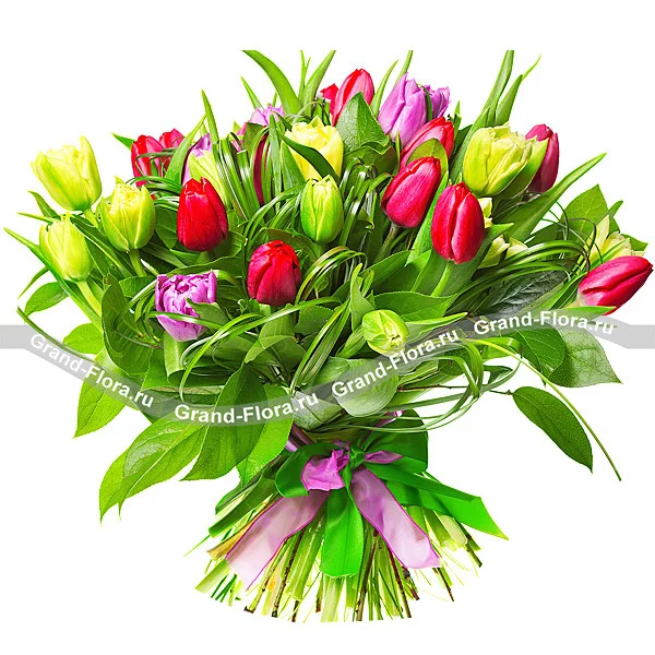 Фееричные цвета этого букета из тюльпанов способны улучшить настроение на 100%!!! Закажите его в праздник или в будний день, маме или жене, бизнес партнеру или просто понравившейся девушке, в любом случае о Вас вспомнят с самыми теплыми чувствами! Удивительный букет!