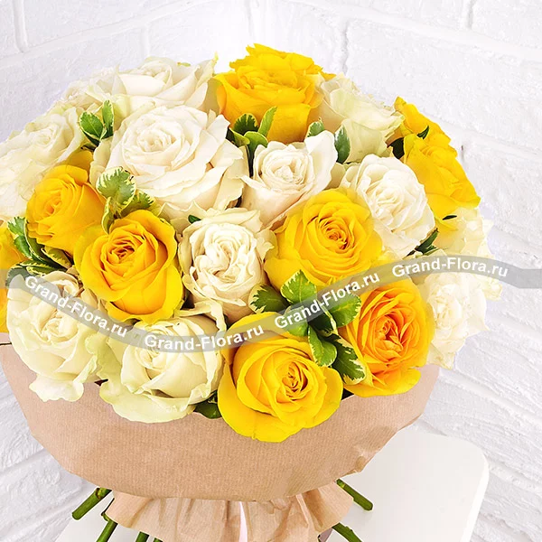 Моё солнце – букет из желтых и белых роз