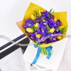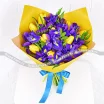 ЛЮКС: тюльпан желтый - 10 шт., ирис синий - 7 шт., статица, упаковка, лента.
