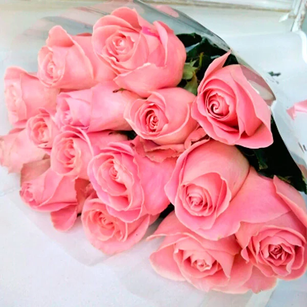 15 роз: роза розовая - 15шт., упаковка, лента.