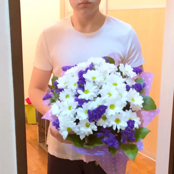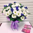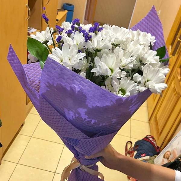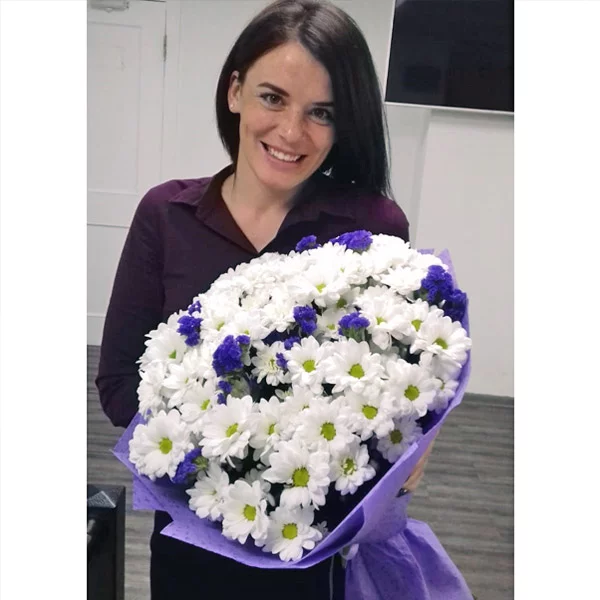 Михаил / г. Уфа / 01.05.2022Оценка букета:Искал букет с ромашками, нигде не мог найти. Когда позвонил в службу, мне пояснили, что в это время года ромашка не поступает в магазины, но кустовые хризантемы ничем не отличаются от ромашки. Выбрал этот букет в люксовом варианте, смотрится очень достойно. Рекомендую.