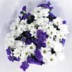 хризантема белая кустовая ромашковая - 5 шт., статица - 2 шт., фетр фиолетовый. Примерный размер: 20Х20 см.